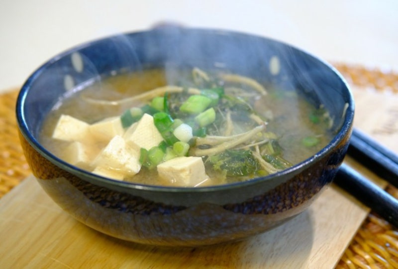 6. 무가 반쯤 익으면 된장 2큰술, 고추장 1/2큰술, 참치액 1큰술~1/2큰술을 넣고 3분정도 끓인다. 7. 야채를 넣고 2~3분간 익힌 뒤 왼쪽의 이미지가 나오면 두부를 넣고 두부가 나올 때까지 익힌다. 8. 위 왼쪽 그림처럼 두부가 익으면 다진 고추냉이와 대파를 넣고 2분간 더 끓인다. 된장국이 완성되면 적당한 크기의 그릇에 담고 위 사진처럼 중앙에 사선으로 자른 고추 2~3장을 올려 마무리한다. 양 고추 냉이는 다루기가 다소 번거롭지 만 된장국으로 요리하면 맛있을 수있는 매우 풍미있는 재료입니다.