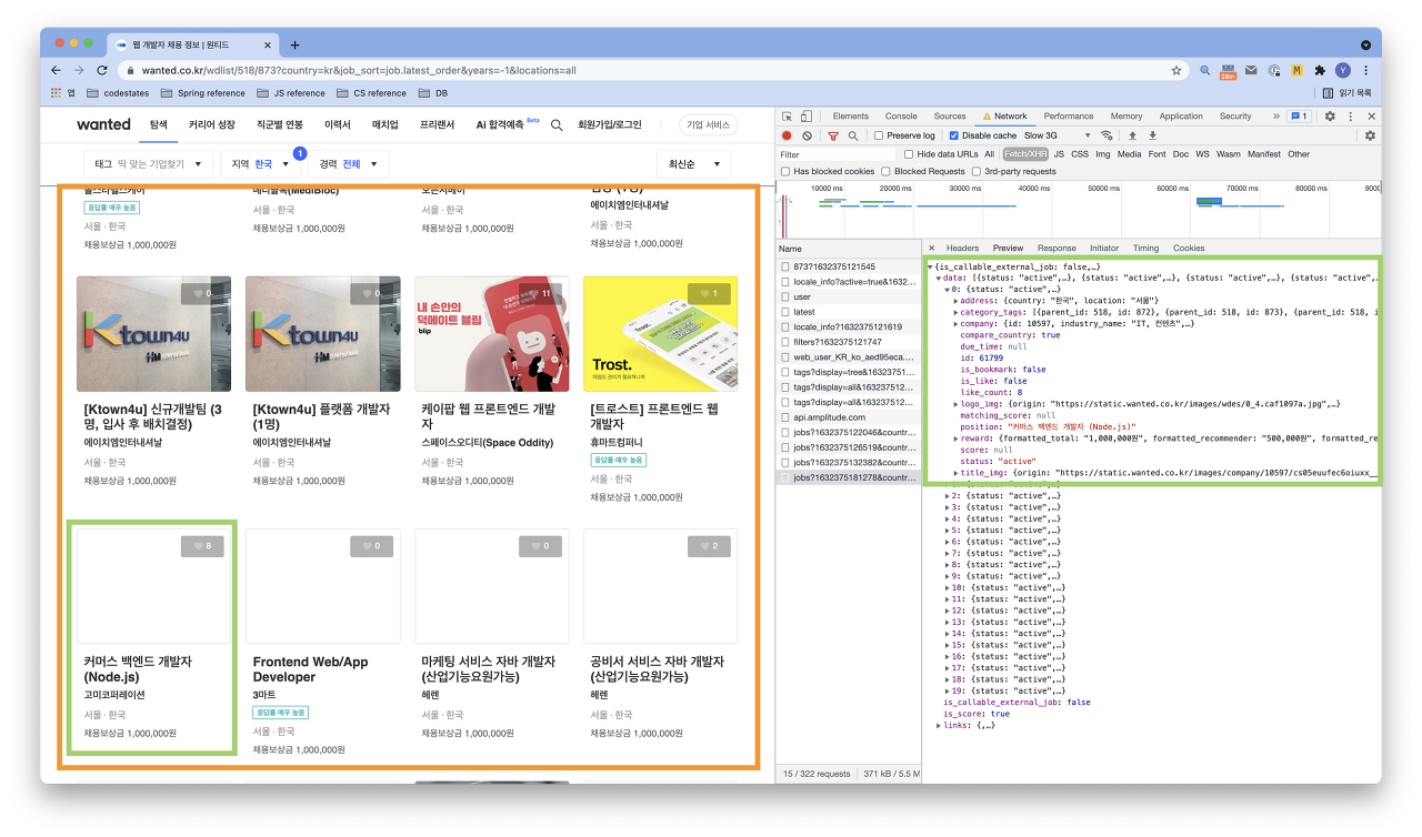 • 아래와 같이 Chrome 네트워크 탭에서 이 프로세스를 확인할 수 있습니다.