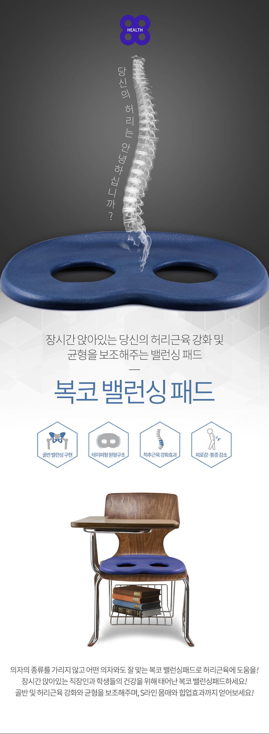 일하느라 의자에 오래 앉아있고 살이 많이 찐 상태여서 엉덩이에 힘이 많이 들어갔나봐요 골반이 틀어져서 좌골활액낭염이 있는것 같아요. 아프다는 말은 괜찮지만 계속 자세를 바꿔야 해서 일종의 전율이나 작열감이 있기 때문에 좌골이 의자에 닿지 않는 것이 좋을 것 같습니다. 그런 패드를 찾다가 복코 밸런싱 패드를 발견했습니다.