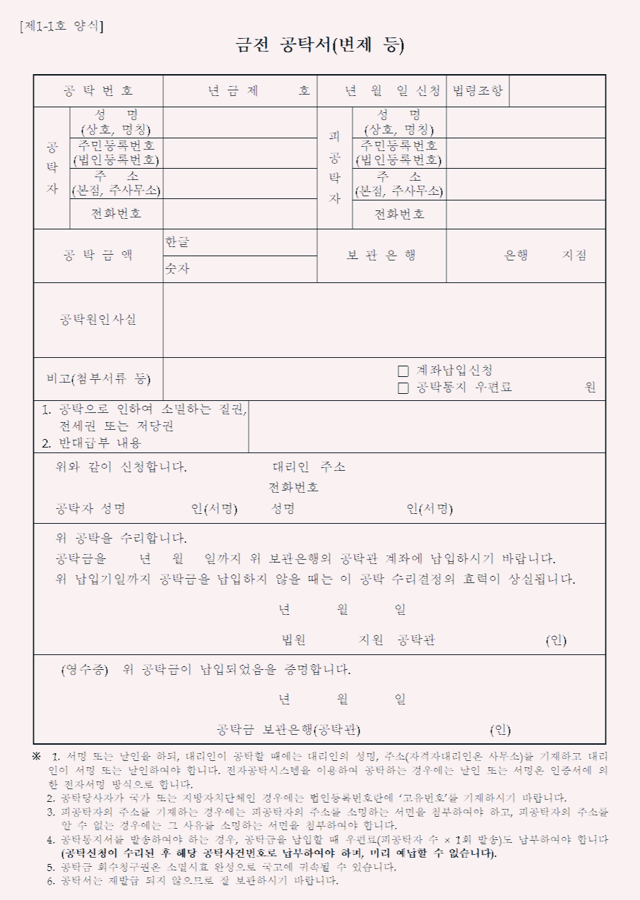(예시: 원금 외에 이자, 지연손해, 비용 등의 경우 이를 모두 포함한 금액을 예치하여야 효력이 발생합니다. 지연손해는 지급일의 익일부터 익일까지를 기산한 금액 지불 유효일)